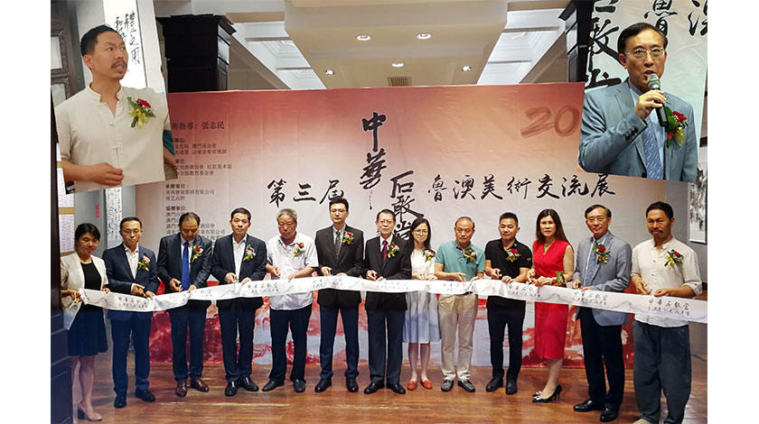 開幕式上並進行了贈送儀式,分別由廣州市合匯教育基金會主席汪義亮贈送給中國天影畫院副院長魏志剛、中國人民大學徐悲鴻藝術學院院務秘書長夏敦林、香港惠來商會名譽會長方玉妹;紅星美術館執行館長贈送給澳門基金會行政委員會委員區榮智、澳門市政署文康及公民教育廳代表黃燕松、南光文創總經理宋曉冬、澳門山東商會岳宗斌及秦志堅等人;開幕禮後由畫家共同向主禮嘉賓導賞介紹作品。第三屆"中華石敢當"魯澳美術交流展,展期由2019年6月19日至6月24日假澳門盧廉若公園春草堂舉行,歡迎市民於盧廉若公園春草堂開放時間內前往參觀。