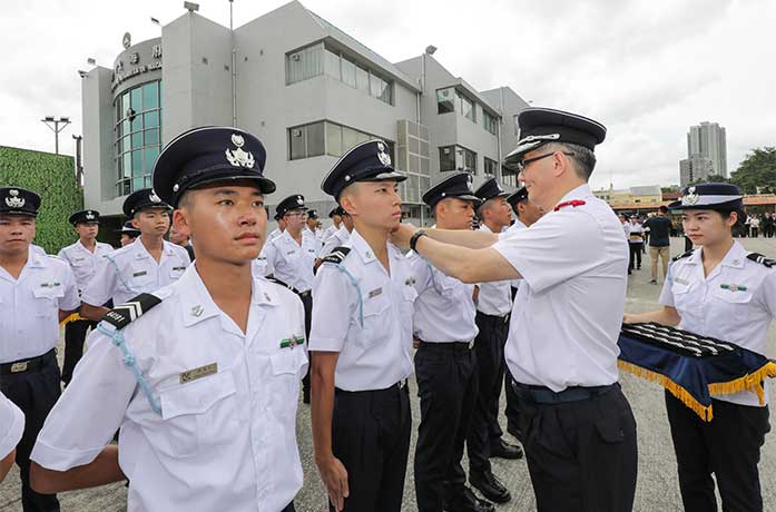 儀式由關長黃有力主持,一眾入職關員宣誓後,由海關各領導及主管為其等戴上肩章,正式成為海關關員。黃有力關長於致辭時表示,隨著國家一帶一路政策、粵港澳大灣區的規劃、蓮花口岸搬遷到橫琴,以及粵澳新通道青茂口岸即將落成,海關的工作將面對更大挑戰。他寄語一眾人員必須嚴守紀律,廉潔奉公,堅守崗位,克盡己任,秉持海關團隊精神,為維護澳門的社會及經濟秩序作出應有貢獻。