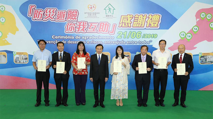【特訊】社會工作局昨假澳門培正中學顧斗昇體育館舉行「防災避險、你我互助」感謝禮,在200多名公共部門及社會服務機構的領導和代表見證下,社會文化司譚俊榮司長並向7個民間團體及私立學校頒發感謝狀,以表揚各單位支持和參與避險工作。