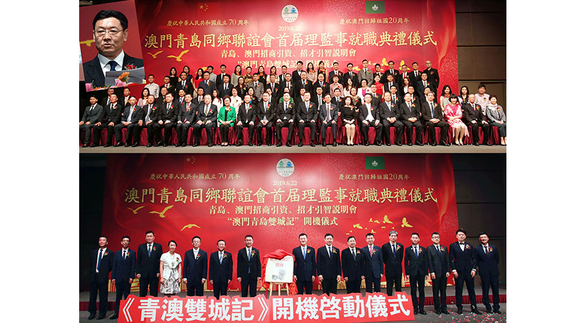【特訊】澳門青島同鄉聯誼會日前(22日)下午假旅遊塔會展中心四樓宴會廳舉辦「慶祝中華人民共和國成立70週年」暨「慶祝澳門回歸祖國20週年」暨「澳門青島同鄉聯誼會首屆理監事就職典禮」暨「青島澳門招商引資、招才引智說明會」暨「青澳雙城記開機儀式」。現場還加插舉辦慶祝澳門回歸祖國二十週年大型紀錄片「青澳雙城記」開機儀式,場面熱烈。