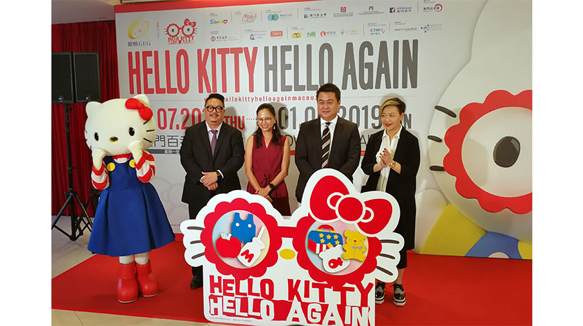 主辦單位昨午在澳門百老匯2樓舉行新聞發佈會,Sanrio HK Co亞洲區營運總監曾瑞群、澳門國際盛事促進會會長盧德忠、以及銀河娛樂集團公共關係高級副總裁林志成等出席啟動儀式。