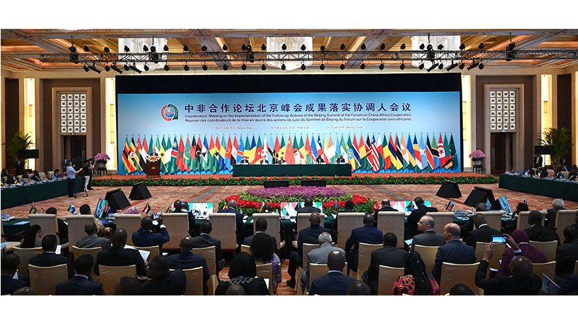 6月25日,中非合作論壇北京峰會成果落實協調人會議在北京開幕。中國國務委員兼外交部長王毅出席,宣讀了國家主席習近平的賀信並致辭。(中新社圖片/崔楠 攝)