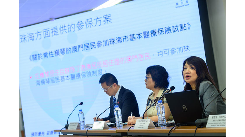 昨早近十時,衛生局突然通知傳媒將於下午三時三十分舉行「關於常住橫琴的澳門居民參加珠海市基本醫療保險試點記者會」。出席記者會的除了衛生局副局長何鈺珊和珠海市醫療保障局局長程智濤外,還有橫琴新區黨委副書記李偉輝和衛生局顧問姚嵐等人。