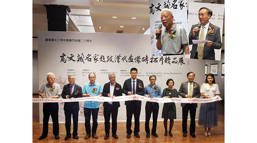 【特訊】為慶賀澳門回歸二十周年,由澳門文化局、市政署支持,澳門文化推廣協會及高文主辦的“慶建國七十周年暨澳門回歸二十周年之高文藏名家題跋漢畫像磚拓片展2019”昨(26日)下午三時在澳門盧廉若公園春草堂舉行開幕儀式。