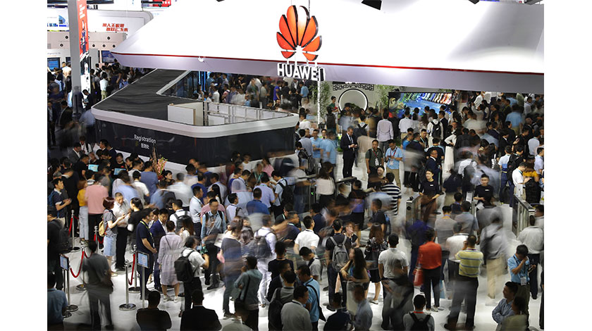6月26日,2019年世界移動通信大會在上海召開。華為、中興、高通、愛立信等全球各大終端廠商紛紛展示5G終端設,共建『5G未來』。圖為華為展台備受關注。(中新社圖片/ 張亨偉 攝)