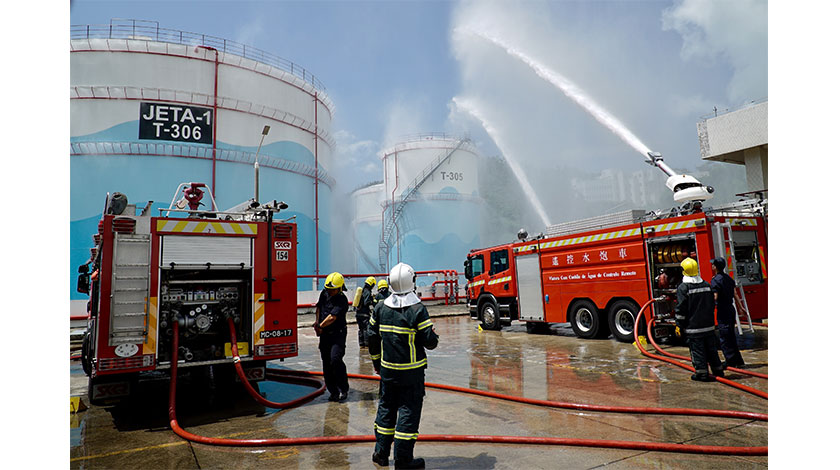 【特訊】為加強九澳油庫在發生事故時的應急工作及協調溝通能力,消防局於昨日,協助澳門油庫管理有限公司在九澳油庫內舉行火警疏散演習,從而測試消防局與九澳油庫之間的協調機制,提高事故時的救援效率。
