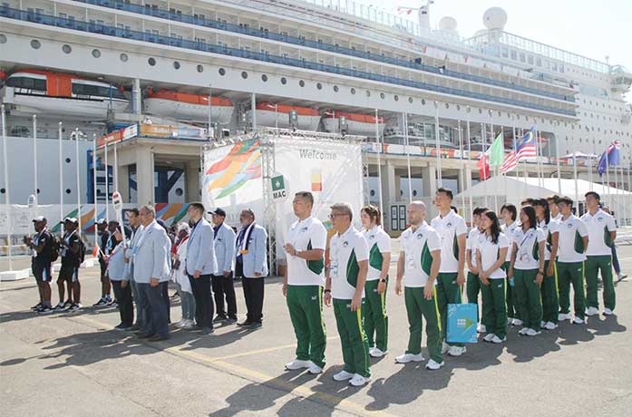 中國澳門體育代表團的升旗儀式已於7月2日下午四時在運動員村內舉行,同場進行升旗儀式的還有埃及和波扎那。運動員村副村長Hubert Porzio致詞歡迎體育代表團,並祝願運動員取得佳績。澳門特區區旗在運動員村升起,標誌著本澳正式參加本屆運動會。隨後運動員村副村長與團長潘永權互贈紀念品。