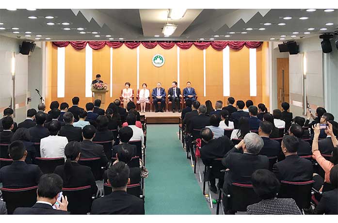 儀式昨早假政府總部舉行,行政長官崔世安、經濟財政司司法梁維特、國家財政部副部長鄒加怡、中聯辦副主任薛曉峰等嘉賓,以及邀請本地金融業界和政府部門出席,共同見證這歷史時刻。