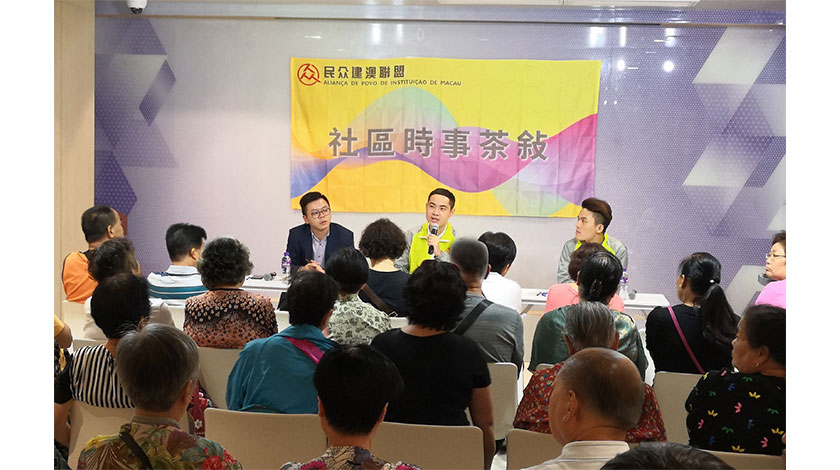 【特訊】日前,民眾建澳聯盟於氹仔立方米綜合活動中心舉辦“社區時事茶敍”,與離島居民共同探討社會民生及公共政策等問題,聆聽居民對政府施政的期望及意見。民建聯理事長兼市諮委李良汪、離島社諮委吳超偉及吳鴻祺出席與居民互動交流。