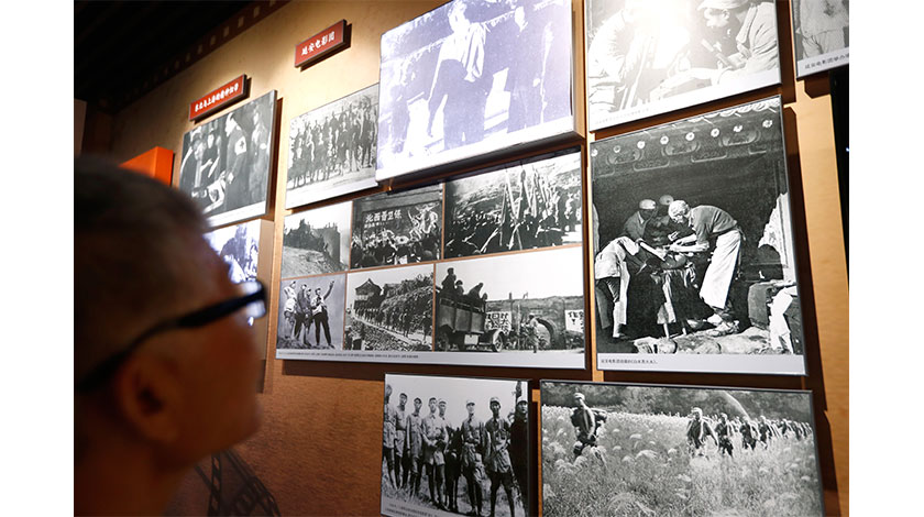 7月7日,民眾參觀延安電影團拍攝作品的介紹。當日,為紀念全民族抗戰爆發82周年,『為抗戰吹響號角——中國共產黨與抗戰文化』主題展覽在中國人民抗日戰爭紀念館開幕。該展覽共分『堅定文化自信發展抗戰文化』、『以文藝為刀槍吹響抗戰號角』、『領導文化抗戰凝聚民族精神』三個部分,展出珍貴歷史圖片210幅,珍貴歷史文物240件(套)。 (中新社圖片/ 富田 攝)