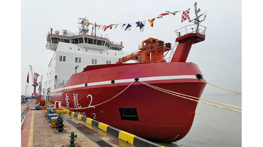 7月11日,中國第一艘自主建造的極地科考破冰船『雪龍2』號在上海正式交付使用。據悉,『雪龍2』號是全球第一艘採用船艏、船艉雙向破冰技術的極地科考破冰船,具備全球航行能力。(中新社圖片/ 申海 攝)