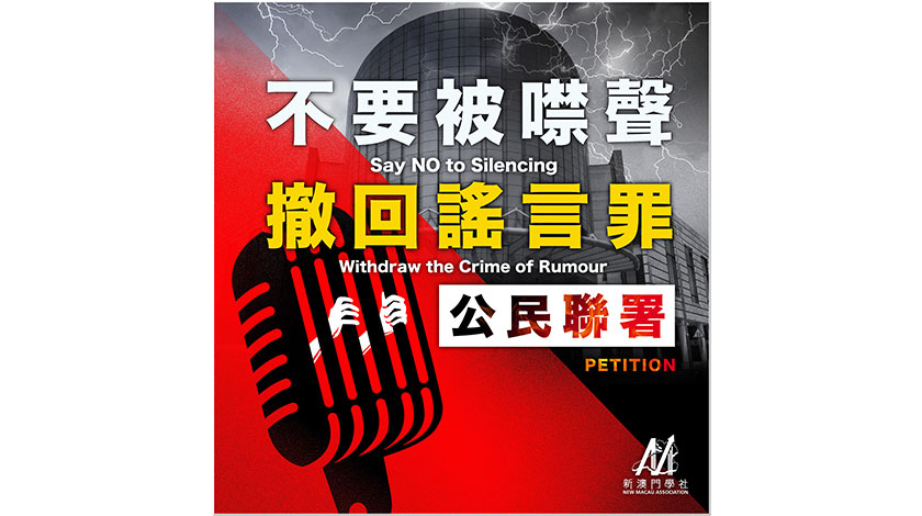【本報訊】新澳門學社發起公民聯署 (https://reurl.cc/QQM05),促請政府撤回《民防綱要法》法案的「謠言罪」條文。學社稱:「『謠言罪』將可為政府達到維穩作用,即使到時只是警方上門拘捕,也足以為市民產生言論的寒蟬效應。災難當前,原本發揮守望相助的民間力量,以至揭露真相的傳媒,將很有可能因為恐懼入罪而一律噤聲。」