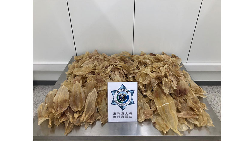 【特訊】前日下午,澳門海關於港珠澳大橋口岸截獲兩名入境人士違法攜帶未經檢疫的乾花膠入境,共重41公斤,海關已依法作出起訴。