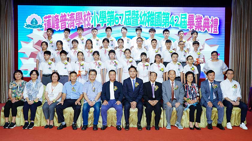 【特訊】澳門蓮峰普濟學校於日前假萬豪軒酒家舉行本年度小學第67屆及幼稚園第42屆畢業典禮。澳門教育暨青年局副局長龔志明、澳門檢察院檢察官白華藝、中國銀高士德支行行長黎偉鴻、澳門佛光協會釋覺仁法師、澳門佛光協會廖冠芝督導、澳門書法家蔡傳興老師、澳門聖公會服務處協調主任岑麗嫦、各友校校長及代表、蓮峰普濟學校校董、老師、家長、學生出席了典禮,場面熱閙而隆重。