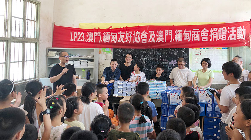 澳門緬甸商會會長、行動23 大隊長黃德來教授表示,探訪止馬小學,天氣雖然酷熱,但無阻大家的熱情,義工提着送給止馬小學小學生的禮品步行上山,為山區的兒童獻愛心、送溫暖。團員在該校的操場舉行了捐贈儀式,向65 多名學生及學校贈送書籍、文具、教學用品、生活用品等;隨後義工與學生一起玩遊戲,場面溫馨、歡笑聲不斷。其間,團員分成不同小組前往多個貧困學生的家庭探訪慰問,還送上生活用品和慰問金,以表關懷祝福。