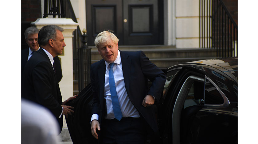 7月23日,在英國倫敦,當選英國保守黨領袖的鮑里斯•約翰遜(右)抵達保守黨總部。英國前外交大臣、倫敦前市長鮑里斯•約翰遜7月23日當選執政黨保守黨領袖,將接任英國首相。新華社發(阿爾貝托•佩扎利攝)