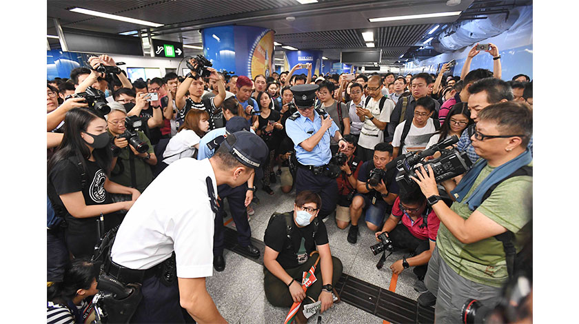 約8時20分,該批人士開始使用背包或身體多次阻礙列車車門關閉,現場發生擾攘。當中有人報稱與列車上的乘客發生糾紛,要求警方跟進,多輛列車服務延誤。期間,大批等待乘車的市民在站內排起長隊,有人見狀選擇離開地鐵站使用其他交通工具。該批人士一度高聲向於現場採訪的一家電視台記者叫口號,但隨即有市民高聲回應他們阻礙他人上班。
