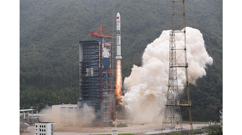 北京時間7月26日11時57分,由中國航天科技集團有限公司所屬中國運載火箭技術研究院抓總研製的長征二號丙火箭在西昌衛星發射中心點火昇空,『一箭三星』將遙感三十號05組衛星送入預定軌道,發射取得圓滿成功。(中新社圖片/梁珂岩 攝)