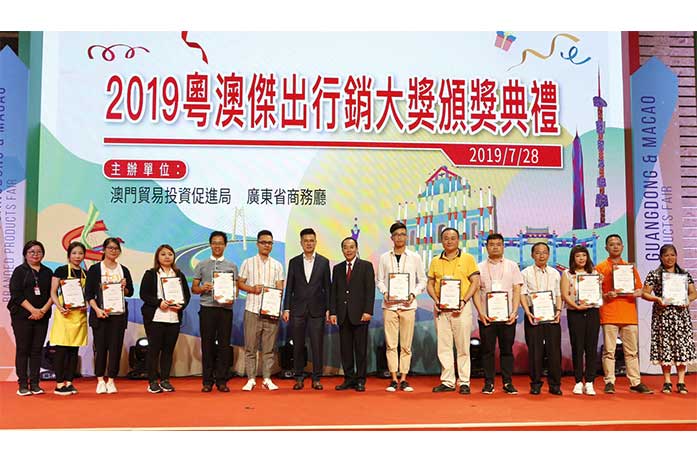 【特訊】由澳門貿易投資促進局和廣東省商務廳主辦的「粵澳名優商品展」,今年續 辦第三屆「粵澳名優商品展傑出行銷大獎」,頒獎典禮於7月28日在澳門威尼 斯人展館B舉行,來自澳門的五月沐苔天然生活用品和廣東省珠海市海灣茶葉有限公司分別獲得「2019粵澳傑出行銷大獎粵澳評審團特別獎」。「粵澳名優商品展」自2009年創辦以來,今年已至第11屆,隨著時代前 進的步伐,「粵港澳大灣區」和「一帶一路」的串聯,整合經濟、商貿和整體區域發展,為了讓各界認識優質的粵澳商品,幫助更多粵澳優秀產品和行銷團隊能 在市場上有更大的影響力,以及激勵相關企業舉辦更多元的品牌行銷活動,於是在2016年舉辦了「粵澳名優商品展傑出行銷大獎」,希望透過此獎項的評選機制,來表彰展覽期間積極舉辦各項優質行銷活動的參展企業,也期許本展成為企業推廣粵澳兩地貿易及品牌發展的重要平台,樹立粵澳產業的典範!澳門貿易投資促進局李藻森執行委員致詞時表示,廣東省和澳門有不少優秀企業,別出心裁、內容新穎的行銷題材則是這些企業不可或缺的一部份。本獎項 創辦目的就是表揚各參展商精心製作的行銷內容,鼓勵得獎參展商再接再厲,不 斷創新。澳門貿易投資促進局職能之一就是支持企業成長,協助企業提升行銷技 巧,舉辦眾多符合未來商業趨勢的活動、講座和研討會,例如本年二月份舉辦了 善用網絡平台提升品牌及企業行銷的專題論壇。歡迎企業留意並參與澳門貿易投 資促進局活動。關於會展部份,李藻森執行委員則鼓勵並邀請各企業參與更多不 同會展活動,如澳門貿易投資促進局舉辦的粵澳名優商品展和本年十月份澳門國際貿易投資展覽會(MIF),以及私人機構舉辦的不同展銷活動。最後,李藻森 執行委員總結本日的頒獎典禮,匯聚粵澳兩地優秀企業,促進交流合作、互相學 習、激發創新思維。頒獎典禮於 28 日晚間 6 時舉行,共頒出由 1 名澳門及1名廣東省參展企業 所獲得之「2019 粵澳傑出行銷大獎粵澳評審團特別獎」,以及總計10名參展商獲獎的「2019粵澳傑出行銷大獎」,澳門貿易投資促進局李藻森執行委員、廣東 省對外經濟貿易企業協會陸超英會長等出席頒獎典禮。
