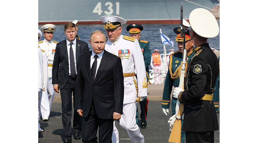 當地時間7月28日,俄羅斯總統普京出席了聖彼得堡舉行的慶祝海軍節閱兵式。(中新社圖片/王修君 攝)