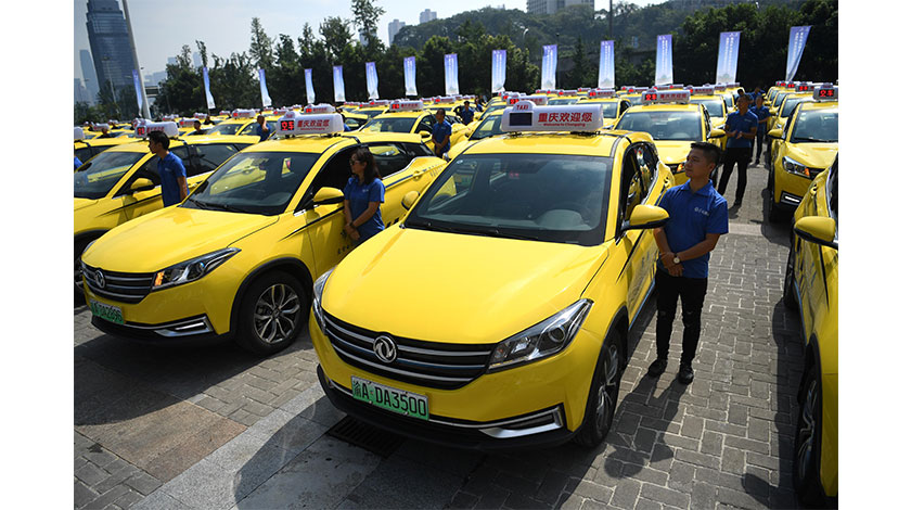 8月1日,重慶200輛純電動新能源車在主城區作為巡游出租汽車正式投入試運營。據悉,本次試點示範運營採取新增投放200輛出租車經營權指標的方式,車輛統一配置新能源車型,運價標準保持與其他出租車一致。圖為純電動新能源出租車。(中新社圖片/陳超 攝)