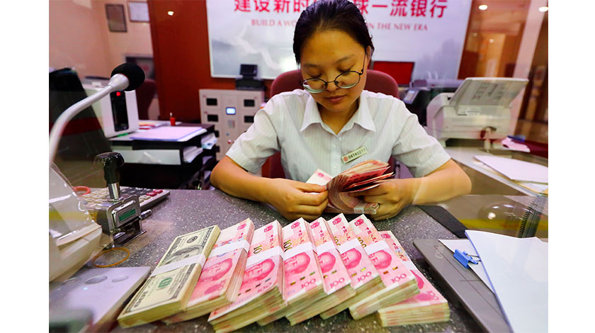 8月8日,中國外匯交易中心將人民幣對美元匯率中間價較前一交易日下調43個基點,報7.0039,創2008年4月21日以來最低值。至此,人民幣對美元匯率中間價已連續六個交易日下調。(中新社圖片/張雲 攝)