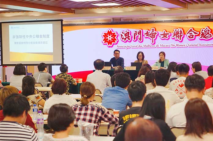 【特訊】為加強本澳居民對社會保障制度的認識,婦聯總會於8月9日邀請社會保障基金舉行“非強制性中央公積金制度預算盈餘特別分配自動提款登記”講解會,期望透過介紹社保基金實行的新措施,加強居民了解相關便民措施和自身權利。婦聯理事長林婉妹等婦聯負責人及婦女工作者逾百人出席。講解會在婦聯大樓二樓禮堂舉行,由婦聯常務理事吳嘉婷主持,社保基金公積金綜合事務處處長何凱生主講。何凱生首先介紹社保基金已於八月一日新增“自動提款登記”措施,年滿六十五歲且正收取養老金或殘疾金的帳戶擁有人可於進行提款申請時同步辦理,完成後翌年起每當有款項分配,只要符合條件,該年度的款項及收益將會自動存入其收取養老金或殘疾金的銀行帳戶,有關長者無需再逐年辦理提款申請,方便長者提取政府分配款項。他又介紹“自動提款登記”辦理途徑包括全澳各自助服務機,或社保基金各辦事處和服務點等。交流環節上,不少與會者積極發言,就著各項長者在申請“自動提款登記”可能遇到的問題進行提問,包括收取通知時期、授權人登記、電子政務、聲明異議、自助服務教學等,均獲社保基金代表一一回答,現場氣氛踴躍。