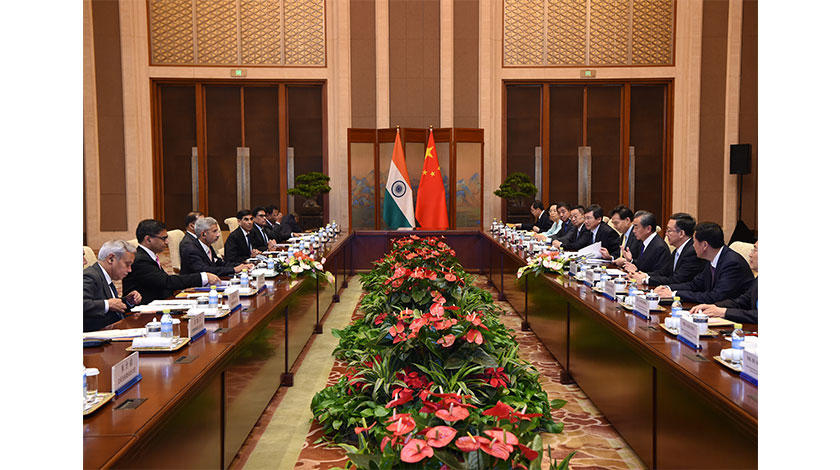 8月12日,中國國務委員兼外長王毅在北京同印度外長蘇傑生共同主持中印高級別人文交流機制第二次會議。(中新社圖片/侯宇 攝)