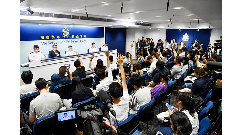 警方表示,13日晚至14日凌晨,大量示威者於香港國際機場非法集結,並禁錮、欺淩及毆打一名旅客及一名記者,對他們造成身心傷害,警方對激進示威者的嚴重暴力行爲予以極嚴厲譴責。