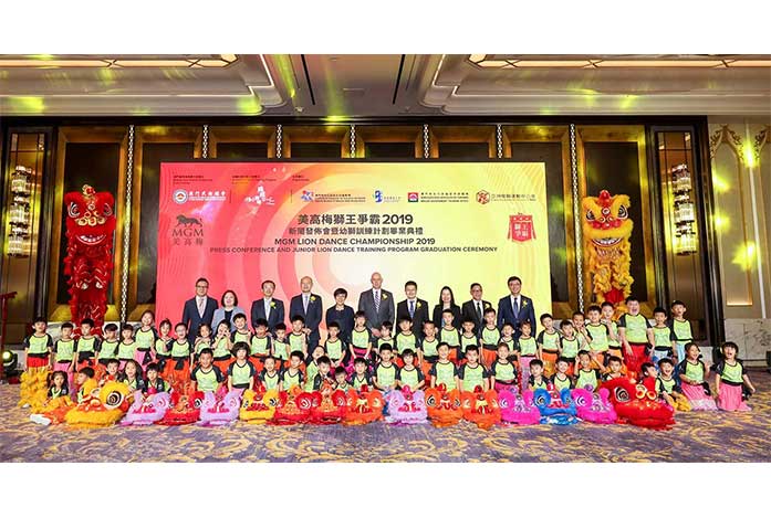 【特訊】「美高梅獅王爭霸—澳門國際邀請賽2019」新聞發佈會暨「幼獅訓練計劃2019」畢業典禮21日於美獅美高梅宴會廳舉行。活動由美高梅幼獅持續訓練計劃學員帶來激昂響亮的「金鼓齊鳴」表演揭開序幕,隨即在現場逾200名來賓的見證下宣佈本屆的獅王爭霸賽將於11月23及24日假美獅美高梅的美高梅劇院盛大開鑼。比賽將邀請多支世界級勁旅參賽,並續設幼獅表演賽,繼續以弘揚舞獅精神為宗旨,把這項中國傳統體藝活動推廣至本地社區及國際舞台。