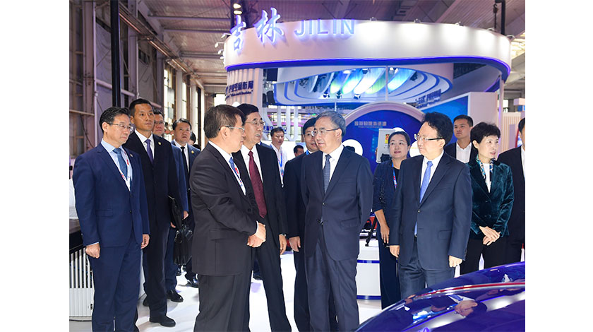 8月23日,第十二屆中國-東北亞博覽會開幕式暨第十屆東北亞合作高層論壇在吉林長春舉行。中共中央政治局委員、國務院副總理胡春華出席開幕式,宣讀習近平主席賀信並致辭。這是胡春華在考察展區。(新華社記者 許暢 攝)