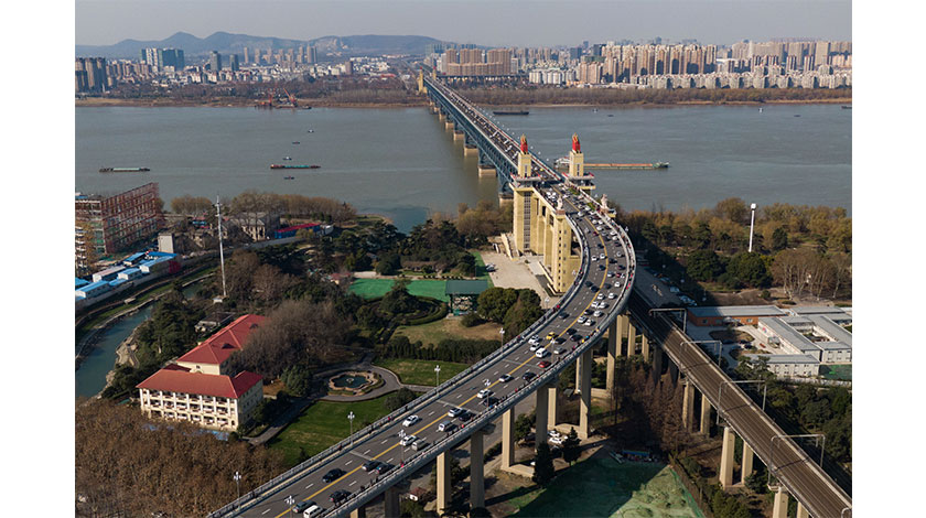 日前,中國國務院印發《中國(山東)、(江蘇)、(廣西)、(河北)、(雲南)、(黑龍江)自由貿易試驗區總體方案》。其中,中國(江蘇)自由貿易試驗區的實施範圍119.97平方公里,涵蓋三個片區:南京片區39.55平方公里,蘇州片區60.15平方公里(含蘇州工業園綜合保稅區5.28平方公里),連雲港片區20.27平方公里(含連雲港綜合保稅區2.44平方公里)。圖為航拍南京長江大橋,連接江南江北。(資料圖片) (中新社圖片/泱波 攝)