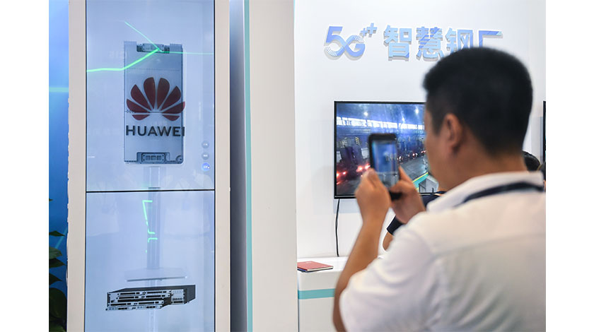 8月27日,2019中國工業互聯網大會暨粵港澳大灣區數字經濟大會在廣州開幕,大會同期推出工業互聯網應用場景特色展,共設『5G+』工業園區、灣區協同和未來工業等七大展區,共計66個展位,吸引112家企業和組織參展。圖為華為5G基站吸引觀展人士。(中新社圖片/陳驥旻 攝)