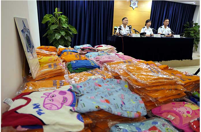 【本報訊】海關日前搜查中區及新馬路四間成衣店,檢獲八百多件懷疑冒牌童裝及泳裝成衣,市值約七萬元,帶走七名男女負責人和店員調查。