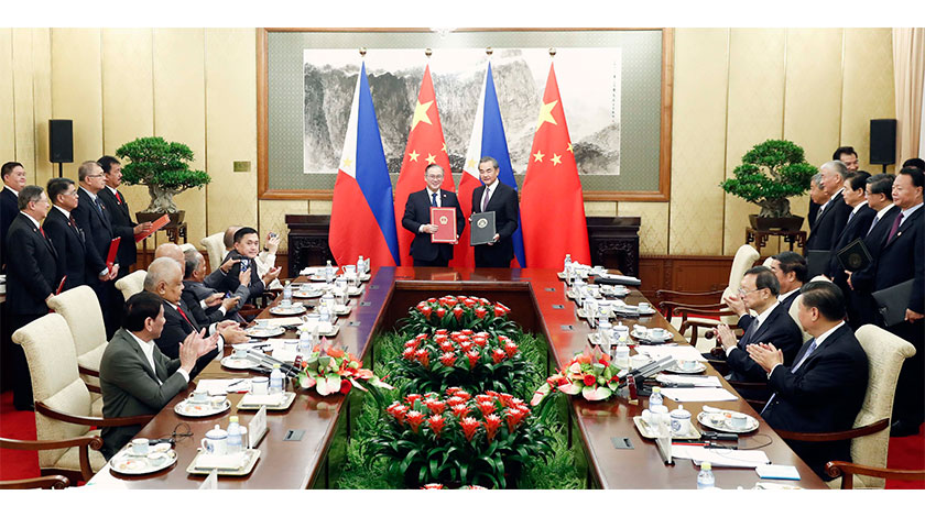 8月29日晚,中國國家主席習近平在北京釣魚台國賓館會見菲律賓總統杜特爾特。會見後,兩國元首共同見證了雙邊合作文件交換儀式。(中新社圖片/盛佳鵬 攝)