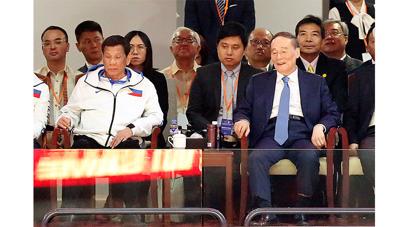 8月31日,中國國家副主席王岐山在佛山會見菲律賓總統杜特爾特。會後,王岐山與杜特爾特一同觀看了菲律賓隊與意大利隊的比賽。(中新社圖片/韓海丹 攝)