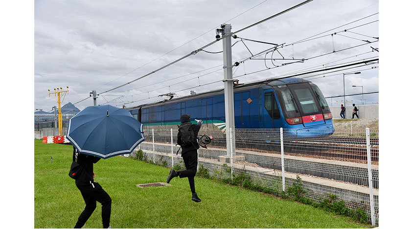 9月1日下午4時30分左右,激進示威者由香港國際機場向東涌方向撤退,途經機鐵車軌處,激進示威者向車軌投摘雜物,致使機鐵列車半路停駛。列車車頭被磚頭砸壞。(香港中通社)