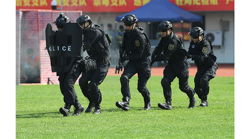 9月2日,長春市公安局舉行2019年全警實戰練兵活動,包括安保反恐演練、警務技能和警體項目的競逐等環節。(中新社圖片/張瑤 攝)