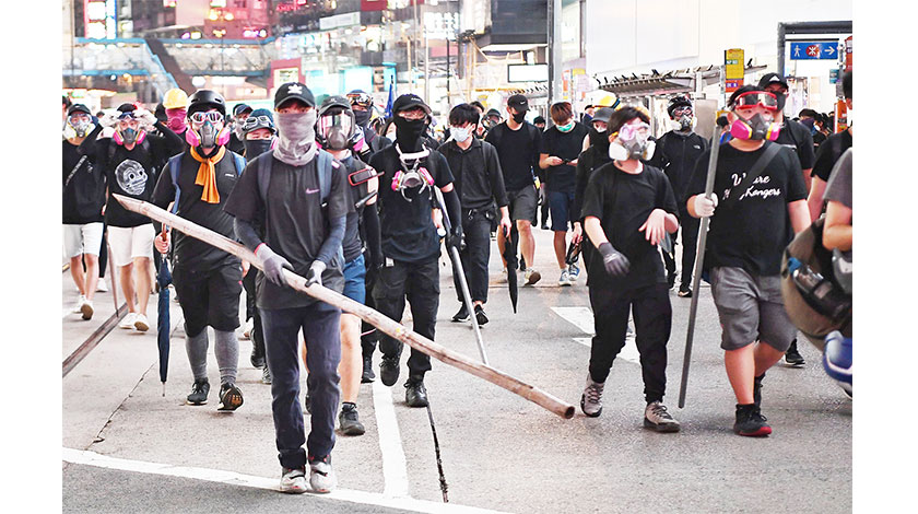 【中央社記者張謙香港8日電】香港大批「反送中」示威者8日下午參加遊行後占領金融中心中環,他們破壞地鐵站進出口,又焚燒站口和在街上縱火,期間警方並未強力驅散。