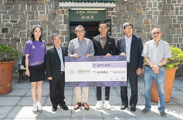 9月7日,太陽城集團行政總裁兼董事周焯華帶領三十多名義工,到訪筷子基盲人重建中心的“社服店”,獲仁慈堂值理會主席飛安達、監事會主席李維仕、秘書長盧茜儀、財務主管賈約翰、托兒所校長馬韶漪、安老院長李錦雯等熱情接待。同場,在其他受惠機構代表澳門街坊會聯合總會會長梁慶球、澳門工會聯合總會副會長林香生的見證下,太陽城集團行政總裁兼董事周焯華、公共及社會關係部高級副總裁李素茵代表集團向仁慈堂送交澳門幣三十萬元善款支票,由主席飛安達代表接收。