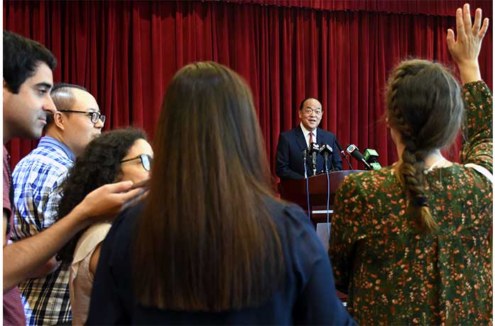 【本報訊】有意見認為,警方針對聲援香港抗爭的手段是壓制表達自由。行政長官候任人賀一誠回應,澳門《基本法》的落實得很好,市民都按照《基本法》行使權利表達意見。他重申,若覺得示威、集會權利受到警方損害,可向法院上訴。法院的門是敞開的,法院的判決是公正的。