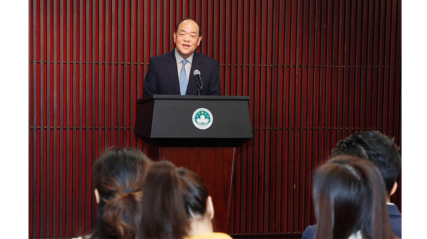 賀一誠強調,會繼續堅持「一國兩制」、「澳人治澳」、高度自治方針,維護好國家安全,維護好澳門社會大局,不可衝擊中央三條底線,破壞「一國兩制」。