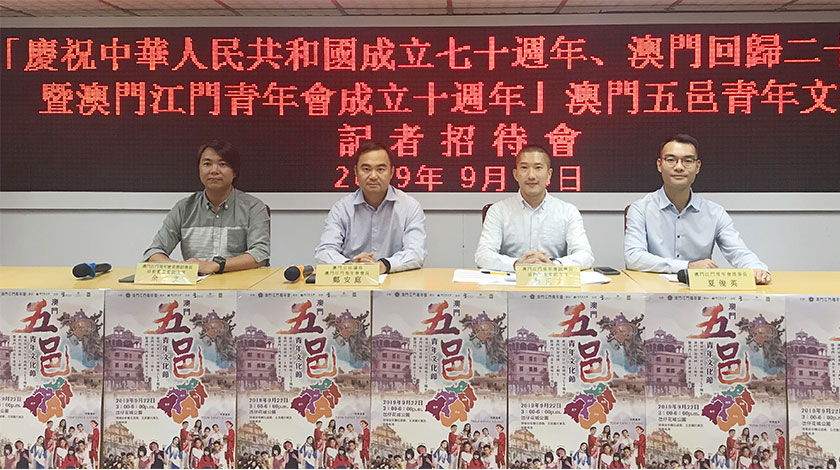 今年適逢中華人民共和國七十週年以及澳門特區成立二十週年,該會於本年度舉辦了一系列關於慶典的活動,如國情研習班、生涯規劃交流之旅、「灣區共融」粵港澳大灣區發展研討會等,並將會在本月二十二日舉辦「慶祝中華人民共和國成立七十週年、慶回歸二十週年暨澳門江門青年會成立十週年」及「澳門五邑青年文化節」,通過以五邑地區為主題的圖片展,展示五邑青年的發展、青年文化及五邑華僑的歷史等;另有攤位遊戲、以及有兒童街舞舞蹈表演、本地歌手及樂隊等的精彩演出,讓市民了解祖國與澳門特區的發展情況、加深市民對國家及澳門特區發展的認識。