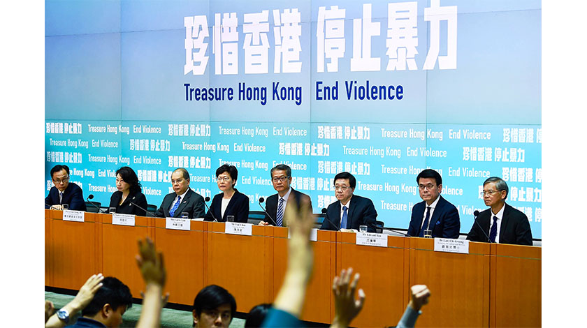 林鄭月娥指,暴力不斷升級,令整體社會秩序正處於極為危險的邊緣。大量學生參與暴動,更是非常危險的警號。暴力不但破壞現在的香港,也將香港青年人置於非常危險的境地,必須盡一切努力立即遏止暴力,阻止學生繼續以身試法,挽救香港的現在和未來。