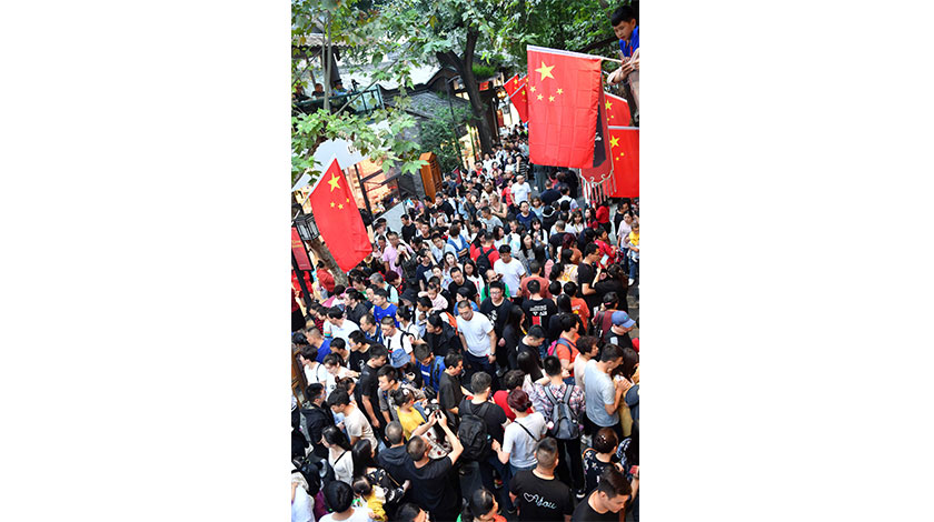 數據顯示,2019年國慶7天全國共接待國內遊客7.82億人次,同比增長7.81%;實現國內旅遊收入6497.1億元,同比增長8.47%。圖為10月1日成都寬窄巷子景區遊人如織(中新社)