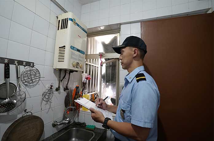於檢查過程中工作人員會檢視燃氣爐具的規格、設置位置、喉管、以及接駁排煙管道至室外的情況,同時向居民講解包括石油氣存用安全知識、燃氣式爐具認識(包括選購、安裝、使用、保養)等注意事項,亦提醒居民及大廈管理員做好日常防火事項,並派發燃氣爐具之使用及保養小冊子,藉此提高居民的燃料及爐具安全知識和家居防火意識。