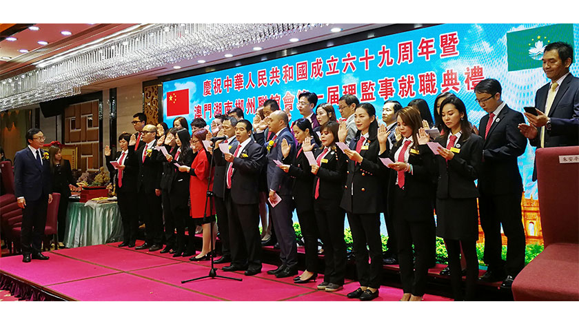 【特訊】澳門郴州聯誼會於日前(26日)晚在富豪酒店五樓舉行慶祝中華人民共和國成立69周年、澳門回歸19周年及該會創會暨第一屆理監事就職典禮。會長李紅表示,該會未來將發揮郴澳兩地橋樑紐帶作用,不遺餘力地促進澳門與郴州的繁榮富強獻計獻策。