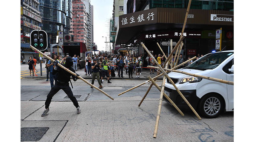 【中新社香港10月13日電 】香港特區政府新聞處12日23時許發佈消息稱,10月12日,在九龍區有示威者在多處堵塞道路,嚴重阻塞交通。蒙面暴徒趁機大肆破壞政府設施、港鐵站及多間暴徒選定的銀行和商舖,更有人縱火及在運作中的港鐵站內投擲汽油彈,行為極之危險。暴徒的行為破壞社會安寧,威脅市民安全,特區政府予以強烈譴責,並呼籲市民與暴徒割席,與政府共同努力回復社會秩序。