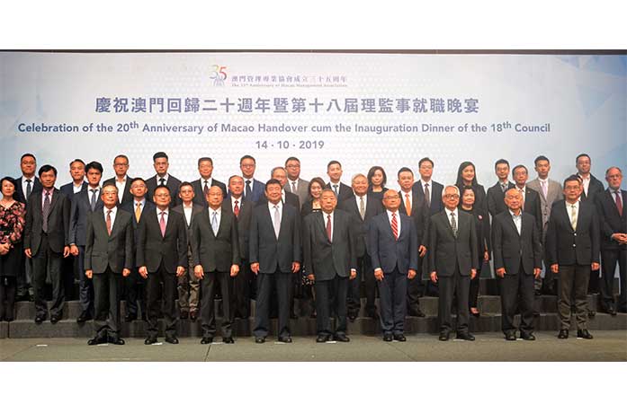 【特訊】為“慶祝澳門回歸20周年暨澳門管理專業協會第18屆理監事就職,澳門管理專業協會昨舉行聯歡晚宴。理事長劉永誠表示,隨著新成員加入,該會定能使會務越辦越好,體會到企業年青人才本地化及國際化的迫切需求,昨舉辦研討會與相關精英共商大灣區人才流動的發展方向及管理策略。