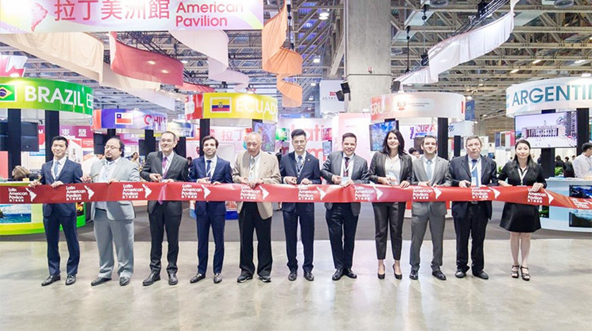 拉丁美洲館於10月17日中午隆重開幕,出席剪綵的嘉賓包括有澳門貿易投資促進局執行委員李藻森、秘魯駐港總領事 Sergio Manuel Avila Traverso、烏拉圭駐廣州總領事 Martin Alvez、委內瑞拉駐港領事主管 Ana Dubraska Garcia、阿根廷駐港總領事代表Nicolas Pirrello、厄瓜多爾駐廣州總領事代表Carlos Lopez、澳門亞太拉美交流促進會創辦人魏美昌博士、羅德禮 (繼承) 有限公司總裁羅加鴻、愛勤集團有限公司董事長鄭建峰以及澳門亞太拉美交流促進會理事長陳家慧。為慶祝展館開幕,秘魯總領事親自為大家調較秘魯國酒——皮斯科雞尾酒供大家品嘗。